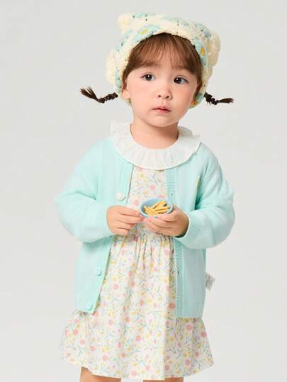 Balabala Baby Girls Lightweight Cardigan, Spring Knitwear - Pink Green - View 1