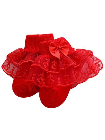 Baby Girls Ruffle Lace Socks, Super Soft Infant Ankle Socks Princess Dress Socks With Bow - Red - View 1
