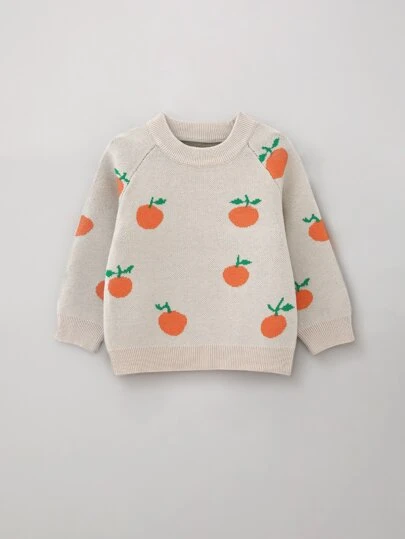Baby Orange Pattern Raglan Sleeve Sweater - Apricot - View 1