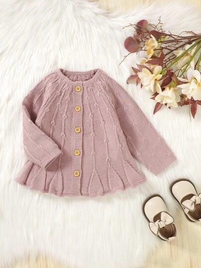 Baby Raglan Sleeve Textured Knit Cardigan - Dusty Pink - View 1
