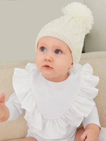1pc Baby Velvet Bib With Ruffled Edge - White - View 4