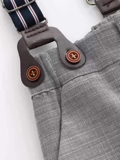 Baby Boy Slant Pocket Suspender Pants - Grey - View 1