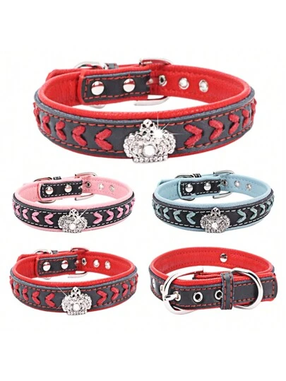 CL156 Woven Decorative Pet Collar, Rhinestone Crown Design Dog Collar, Soft Lining For More Comfort, Suitable For Small/Medium/Large Dogs - Multicolor - View 1