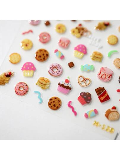 1pc Cute 5D Embossed Relief Nail Art Sticker Colored Manicure Decal Jelly Design Doughnut Bread Biscuits Nail Art Decorations Decals Nail Stickers DIY Nails Nail Supplies - Multicolor - View 1