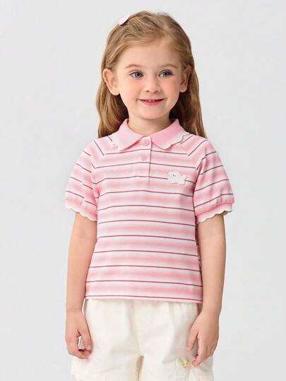 Balabala Girls' Short-Sleeve Polo Shirt, Sweet Summer Baby Tee, 2025 New Arrival - Red and White - View 1