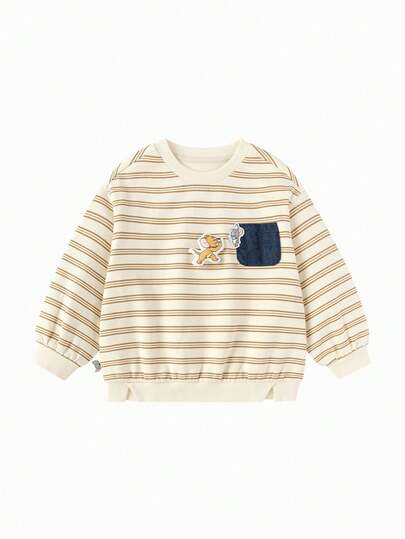 Balabala Tom And Jerry Boys Crew Neck Sweatshirt, Playful Cartoon Print, Comfortable Fit, Spring Weekend Wear - White Tone - View 1