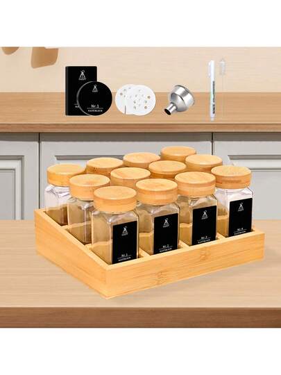 | Color | 12 Square Bottles With Bamboo Lids and Tray |