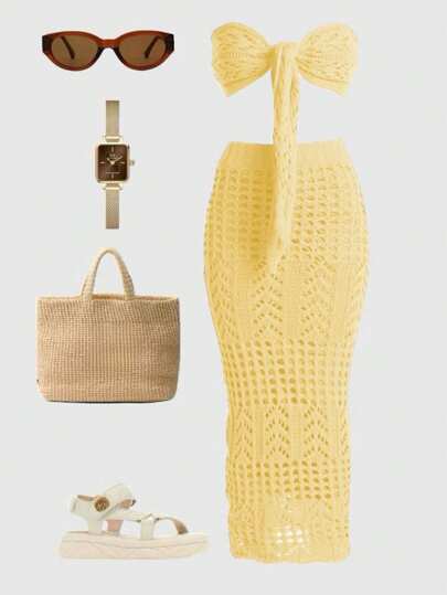 Korean Style Christmas Casual Boho Holiday Party Vintage Clothes Women Old Money Style Cute Airport Streetwear Country Concert Outfit Jumpers Co-Ords Sets Women Cosplay Halloween Costume Halloween 2025 Sexy Witch Costume Going Out Fall Women Clothes Back To School Clothes Y2K Country Concert Outfit Fall Dresses For Women Winter Outfit For Women Goth Series Strapless Bow High Waist Bodycon Sexy Beach Resort Hollow Out Knit Suit - Yellow - View 1