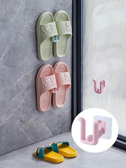 2pcs Wall-Mounted Bathroom Slipper Hangers, No-Punch Shower Room Hanger, Slipper Drain Rack, Toilet Shoe Rack, Bathroom Storage Shelf - Pink - View 1