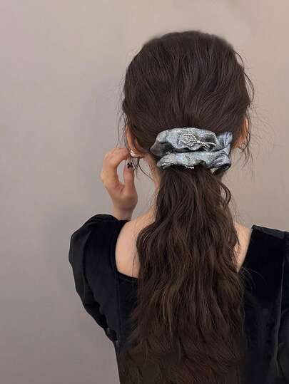 Beaded Bow Hair Scrunchies, Shiny Thick Coil Hair Ties, Glossy Soft Ponytail Hair Accessories Scrunchy Hair Ties - Multicolor - View 1