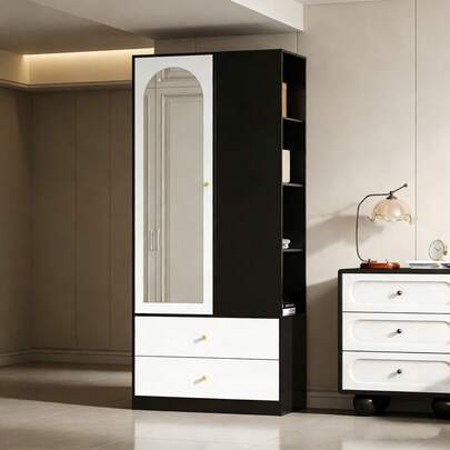 Bedroom Armoires - White+Black + Particle Board - View 1