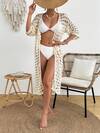 Lightweight Hollow-Out Large Grid Knit Cardigan, Loose Fit Drop Shoulder Casual Sexy Beach Vacation Silky Jacket, Summer