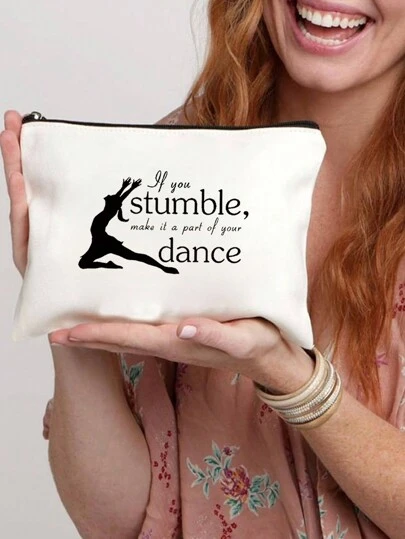 Best Gifts Funny Makeup Bag, Warm Sweet Inspirational Sayings Zipper Pouch, If You Stumble Make It A Part Of Your Dance Gifts For Women Friend, Outdoor Travel Storage Bag Beauty Kit Toiletry Makeup Bag, Travel Bag Graduation Gift, Cute Retro Simple Fashion Letter Pattern Printed Bag Storage Bag, Item Storage Cosmetic Bag Storage Bag, Christmas Makeup Storage Bag, Laundry Bag Clutch Bag, Lightweight Folding Storage Bag, Simple Shopping Bag, Teacher Gift Clutch Bag, Nurse Doctor Teacher Gratitude - Beige - View 1