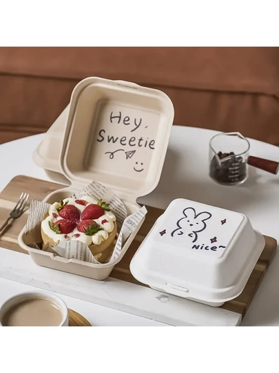 50pcs/Set Bento Cake Box, Tiramisu Dessert Container, Burger Box, Camping & Picnic Box, Western-Style Food Packaging Box School Supplies Food Bag Food Box Suitable For Candy Chocolate Cookies Etc. - White - View 1