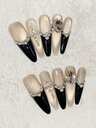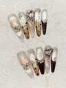 Elegant Touch At Your Fingertips! A Set Of 10 Handmade Nails With Medium Oval Shape, Brown Hand-Painted Leopard Print, Paired With Blue Metallic French Tips, Hand-Painted Plaid, And Black Dots For A Luxurious Look, Accented With Blue Rhinestones. Perfect For Everyday Work, Going Out, Holiday Outfits, Concerts, Or As A Gift For A Friend. This Reusable Handmade Press-On Nail Set Comes With Jelly Glue And A Mini Nail File.