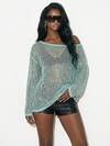 Femmeiva Sequins Hollow-Out Knit Sheer Pullover Sweater For Women, Music Festival