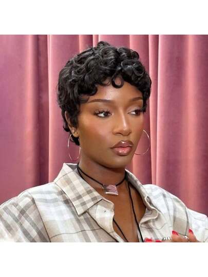 Black And Brown Wig Density Women's Curly Wave Pixie Cut Wig With Bangs | Glueless Rose Net Cap,High-Temperature Resistant Synthetic Wig, Natural Look | For Daily & Party Use - Multicolor - View 13