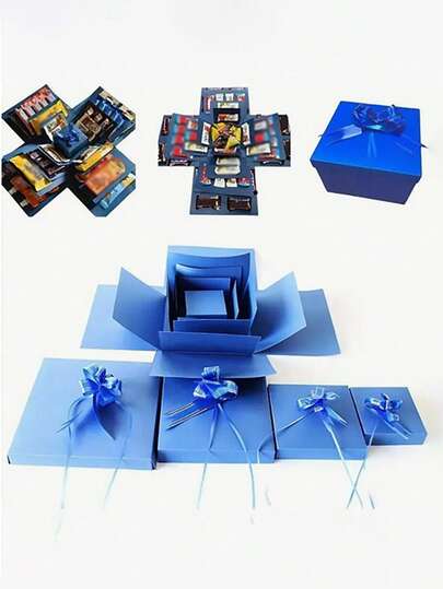 Black/Blue Covered Gift Box Packaging Set, Surprise Gift Photo Box, Creative DIY Exploding Gift Box, Engagement, Birthday, Graduation Party - Blue - View 1