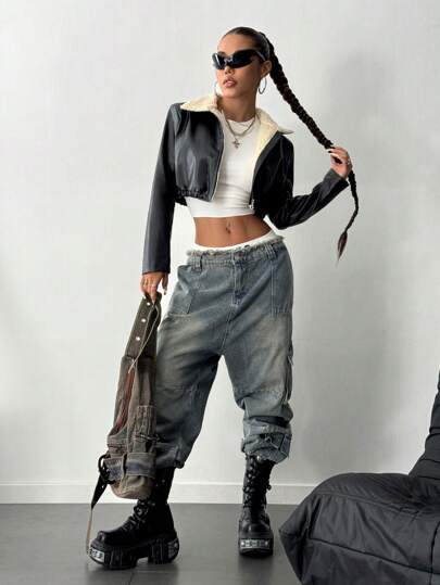StreetHx Black Leather Zip-Up Jacket With Thermal Lined Fall Cloth For Women - Black - View 7