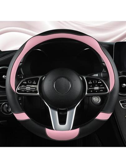 Black & Pink And Skin-Friendly Faux Leather Steering Wheel Cover With Inner Ring - Multicolor - View 1
