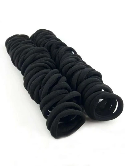Black Seamless Hair Tie Elastic Rubber Band Hair Rope - Black - View 2