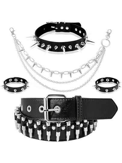 Black Studded Belt,Spiked Bracelets Jeans Pants Chain Goth Rivet Punk Rock Cuff Bracelets Bullet Belt Grunge Emo Accessories For Women Men - Black - View 1