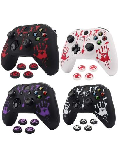 Blood Handprint Controller Skin Cover Compatible With Xbox One Controller, RALAN 1 Controller Protector Case+4 Customised Thumb Grips Caps - Multicolor - View 1