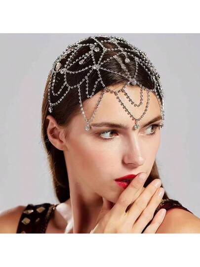 Bohemia Hollow Rhinestone Mesh Headpiece Wedding Head Chain Jewelry For Women Luxury Crystal Headband Head Cap Hat Hair Accessories - Style 2 - View 1