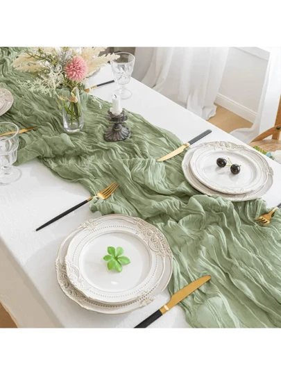 Bohemian Style Bali Yarn Wrinkle Table Runner Decoration, Twist Tablecloth For Wedding & Party - Green - View 1