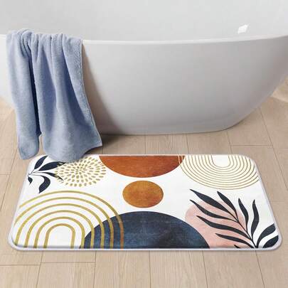 Bohemian Style Plant & Gold Color Print Bath Mat, Area Rug, Bathroom Accessories, Doormat, Non-Slip Absorbent Soft Washable, Round Leaf Pattern, Suitable For Bathtub, Shower, Laundry Room, Bathroom Decor - Multicolor - View 10