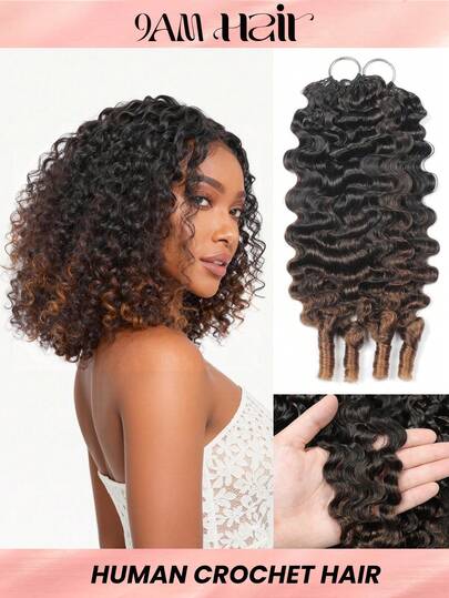 Boho Braids Human Crochet Hair In 100% Remy Human Hair Burmese Curly Feather Line Boho Crochet Braids Human Hair Salon Silky Seamless Invisible For Thin Hair Woman Micro Pre Looped Crochet Human Hair Extensions - SNATURAL/30 - View 1