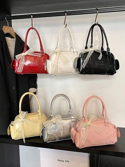 Boutique And Versatile Handbag For Women, Shoulder Large Capacity Phone Bag, Contrasting Color And Versatile Small Bag, Solid Color And Minimalist Underarm Bag, High-End And Beautiful Ribbon Bow - Multicolor - View 13