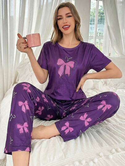 Bộ đồ ngủ tay ngắn in hình nơ