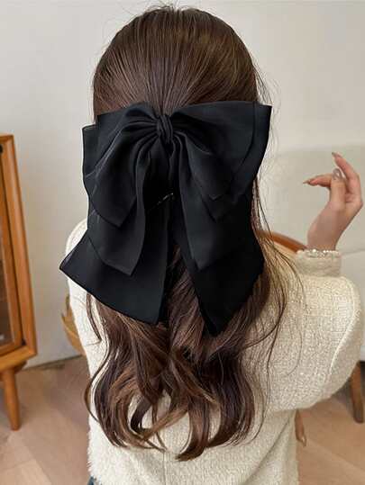 Bow Decor Hair Claw Cute - Black - View 1
