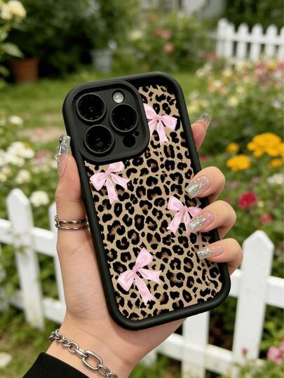 Bow-Knot 1pc Black Leopard Print Bow Creative Luxury Phone Case Compatible With Apple 16, 15, 14, 13, 12, 11 Pro Max, Series - Multicolor - View 1