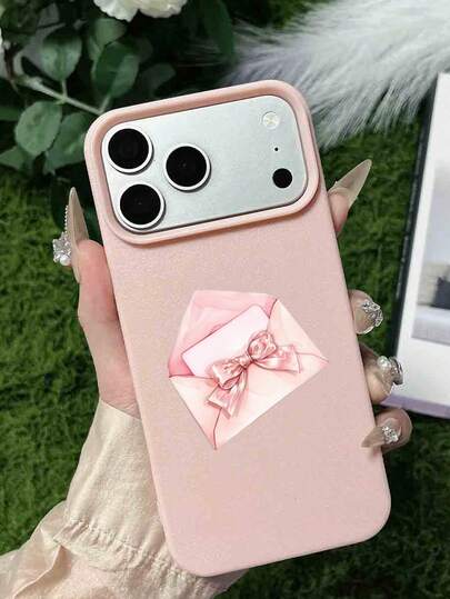Bow-Knot 1pc Pink Faux Leather Texture Phone Case With Painted Pink Valentine's Envelope Pattern, Compatible With IPhone 11/12/13/14/15/16/17 Pro Max, Galaxy S23 Ultra/A14/A24, Redmi Note 12 Pro - Multicolor - View 1