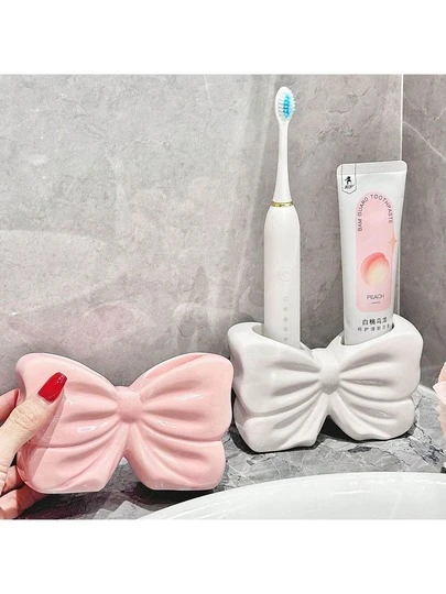 Bowknot Electric Toothbrush Holder, Bathroom Vanity Toothbrush & Toothpaste Organizer Stand - Pink - View 1