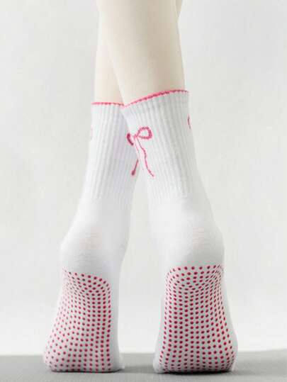 Bowknot Women'S Non-Slip Yoga & Pilates Long Socks - Grippy Ballet/Barre/Dance Socks With Silicone Gel Dots, Anti-Skid Grips, Moisture-Wicking Mesh, Cute Bow Detail; For Yoga, Pilates, Pure Barre, Ballet, Dance, Gym, Studio, Home; Washable Nude Casual Fashion Socks; Slip-Resistant On Hardwood & Mats; Toe-Separator/Full-Toe Options; Light Compression For Arch Support; Gift For Dancers & Yogis,Halloween Gifts, Christmas Gifts - Multicolor - View 1