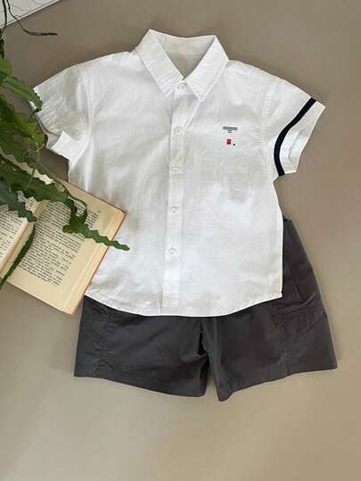 DAZY Boys' Cartoon Print Front Button Casual Short Sleeve Shirt - White - View 1
