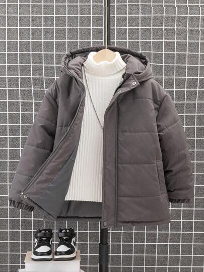 Boys' Casual And Warm Coat For Autumn And Winter - Dark Grey - View 1