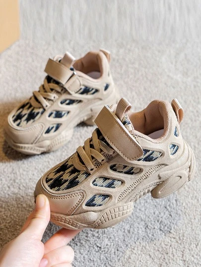 Boys Colorblock Lace-up Front Sneakers - Khaki - View 1