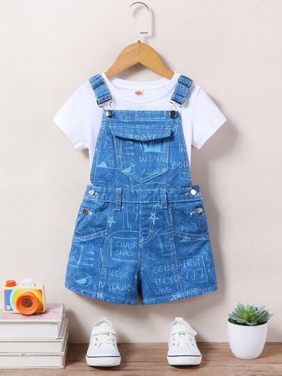 Boys' Cute And Lively Denim Overalls And Jumpsuit, Toddler - Medium Wash - View 1