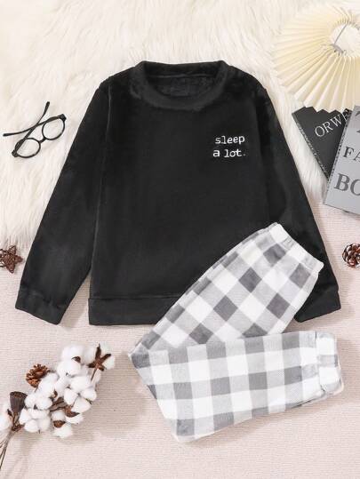 Boys' Flannel Grid Embroidered Letter Suit - Black - View 1