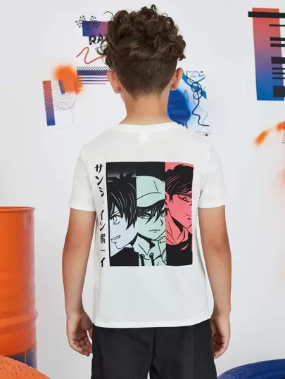 SHEIN Boys Japanese Letter & Figure Graphic Tee - White - View 5