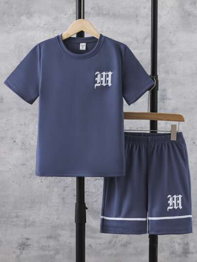 Boys Letter Graphic Tee & Track Shorts - Blue - View 1