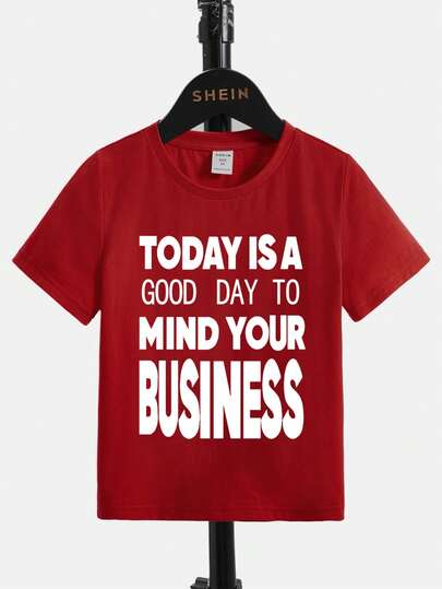 SHEIN Boys' (Little) Slogan Printed Short Sleeve T-Shirt - Red - View 1