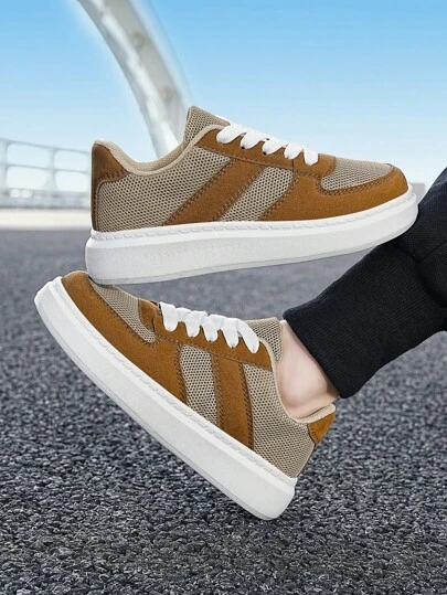 Boys Two Tone Lace Up Front Comfortable Sporty Skate Shoes For Outdoor - Coffee Brown - View 1