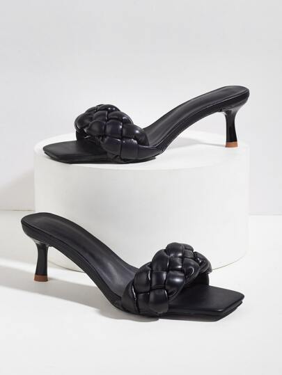 Women Braided Design Stiletto Heeled Sandals, Vacation Black Mule Sandals - Black - View 1