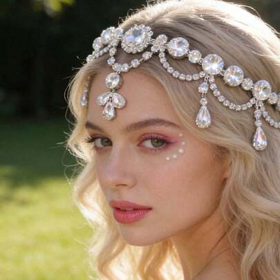 Bridal Wedding Crystal Glass Fairy Tassel Headpiece, High-End Style; European & American Style Forehead Chain Water Drop Headband - Multicolor - View 1