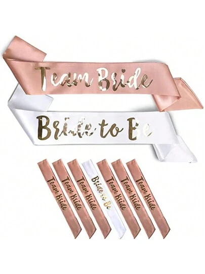 Bride Tribe Shoulder Straps, 6pcs Bridesmaid Rose Gold & 1pc White Bride, Sequin Halloween - Dusty Pink - View 1